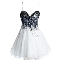 VILAVI Women's A-line Sweetheart Short Tulle Crystal Beading Graduation DressesGross Weight (g): 1000Brand: VILAVISilhouette: A-lineNeckline: Spaghetti Straps , SweetheartWaist: NaturalHemline/Train: Short/MiniSleeve Length: SleevelessEmbellishment: Crystal/Rhinestone... see all